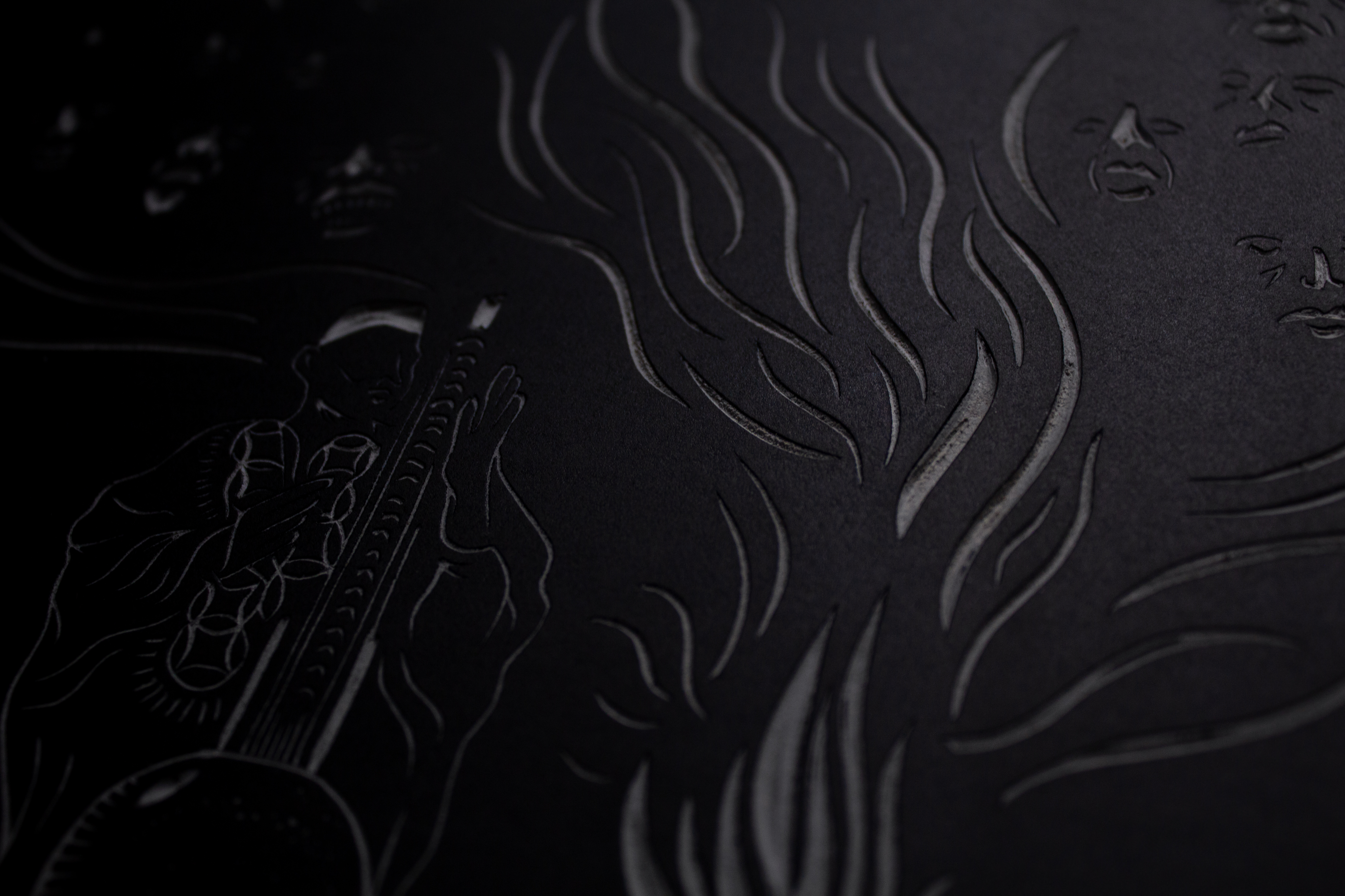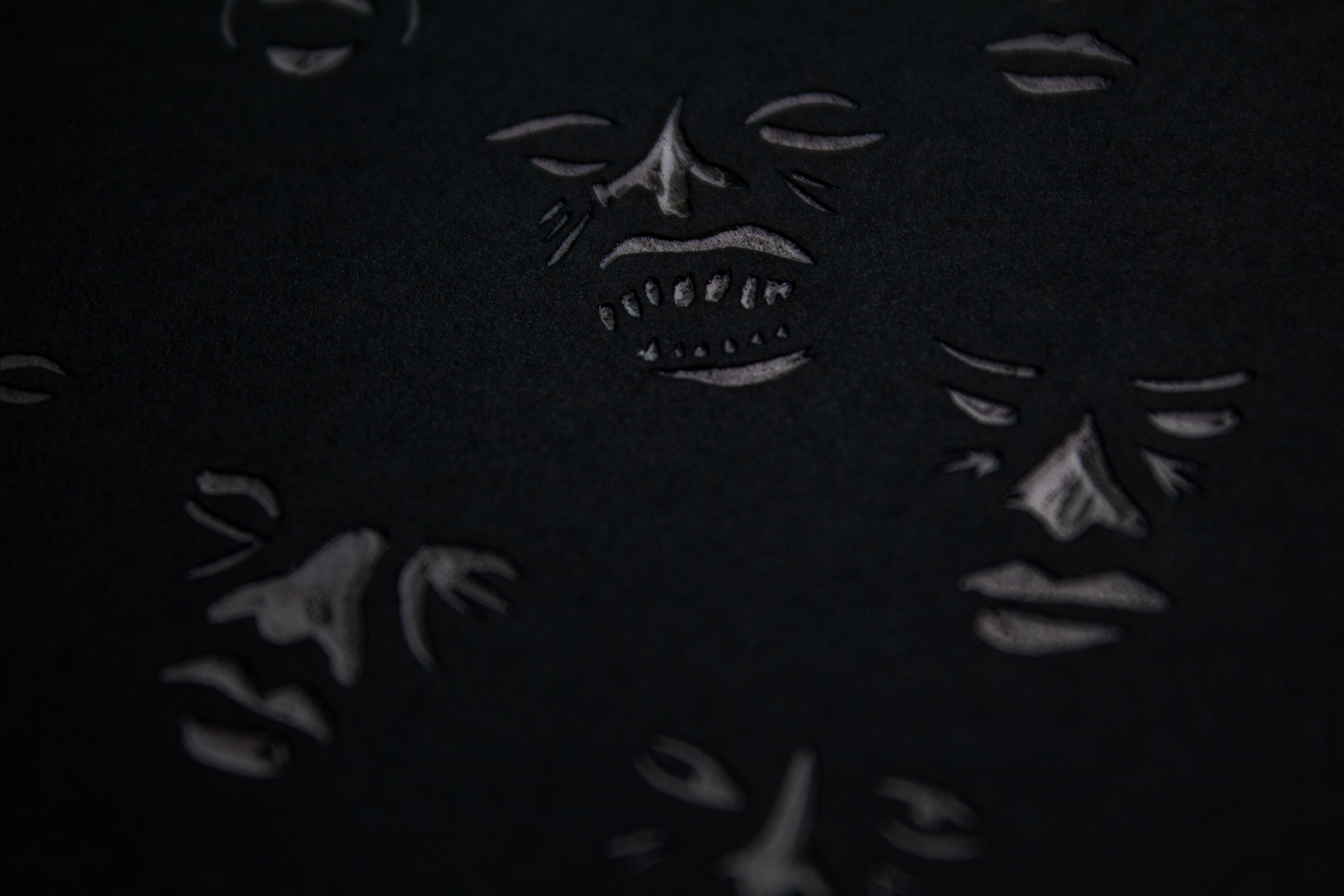 While we began our hunt online, we quickly realized we needed something more tactile. By working directly with linocut illustrator Mike Black, a.k.a. Blockforest, we could explore real textures and materials firsthand, watching how they shifted and came alive under different lighting conditions.
